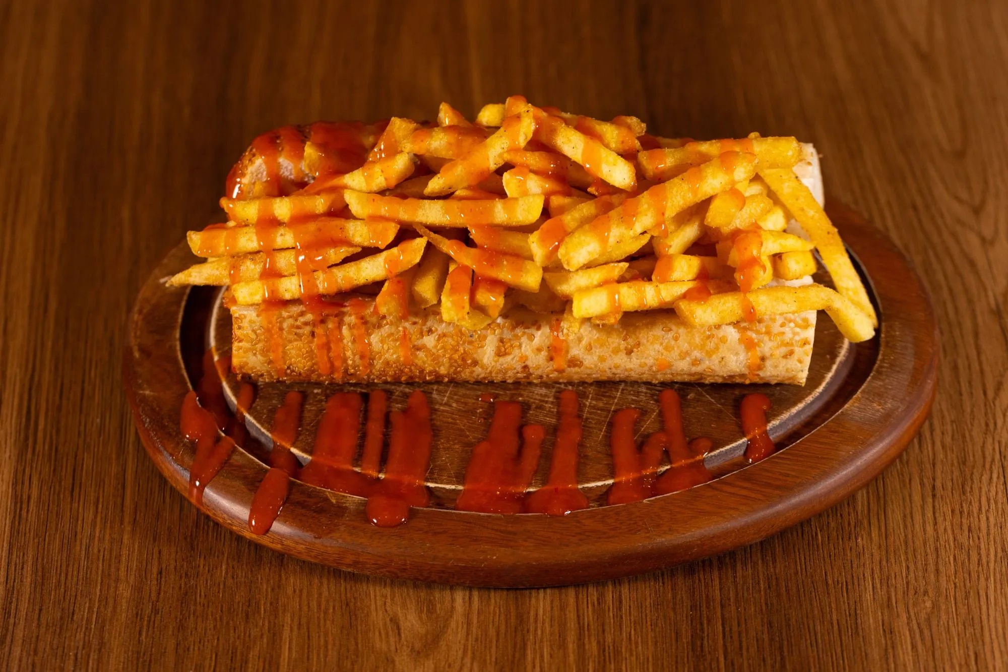 130 gr. çıtır tavuk, soğan, domates, yeşillik, kibrit patates, özel sos. Patates kızartması ile
